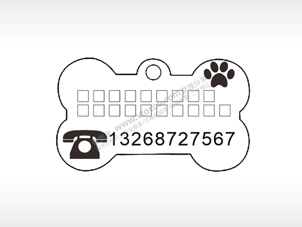 爪子电话标志骨头形背面狗牌AI8.0格式激光打标文件通用矢量图